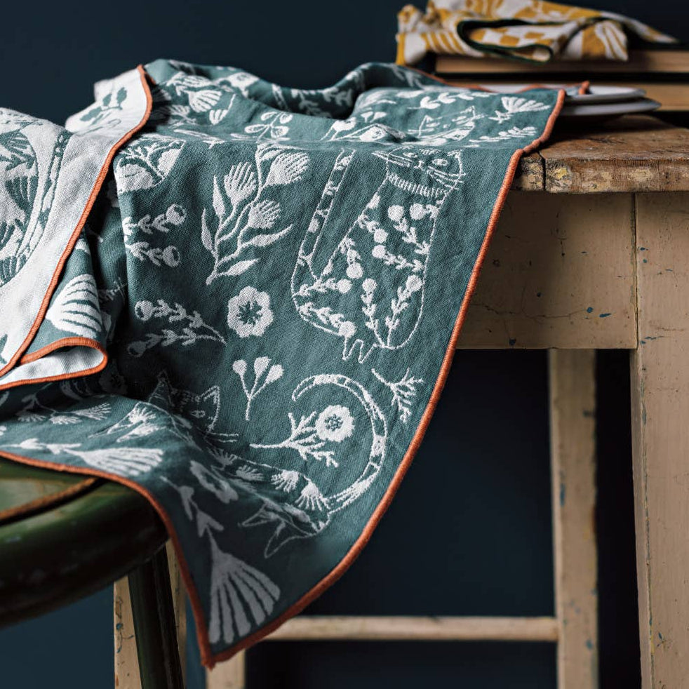 • Floral Cats on Teal - Double Cloth Dishtowel